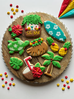 Want step-by-step instruction for decorating these exact designs? Pair this cutter set with the coordinating Hawaiian Luau Cookie Decorating Online Class for a complete decorating experience. (Class sold separately.)